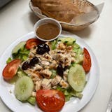 Our house salad served with a generous portion of our homemade tuna salad.